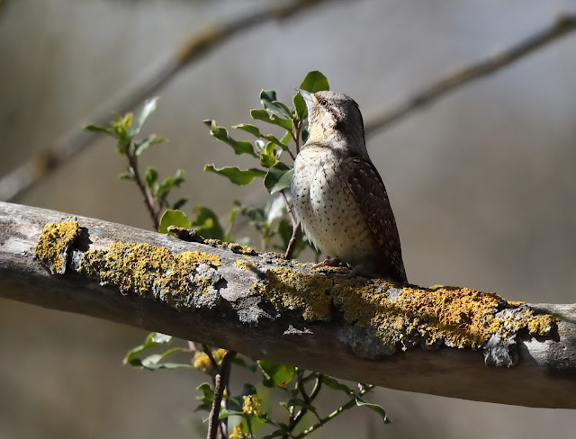 Tras circundar una de sus lagunas donde anteriormente los había observado, no tuve la fortuna de descubrirlos, así es que hubo que cambiar de planes y animado por el canto que escuché perteneciente al mimético torcecuello, me dirigí a la zona de donde procedía el canto y allí me mantuve apostado con la esperanza de que se dejara ver.