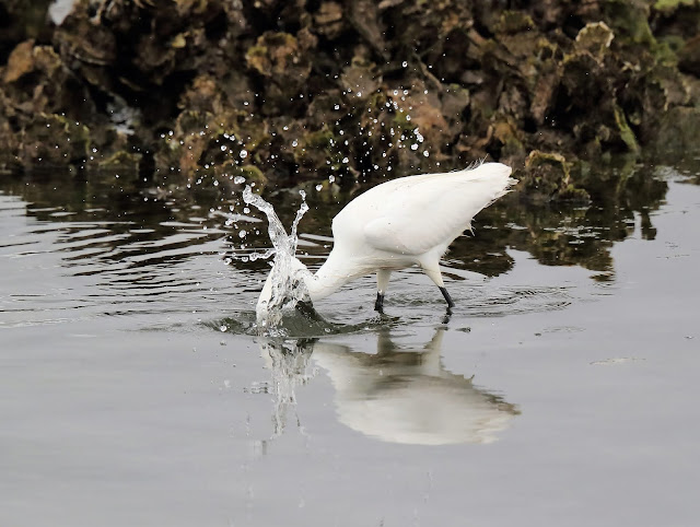 Finalmente una garceta común también me obsequió con algún lance de pesca, aunque sus presas resultaron ser pequeños pececillos por lo que debió esforzarse mucho para poder saciar el hambre convenientemente.