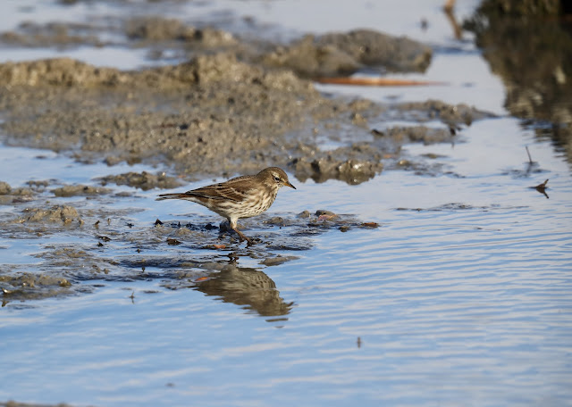 Por esta época son también asiduos del humedal algunos pajarillos migrantes como las bisbitas alpinas o los pardillos.